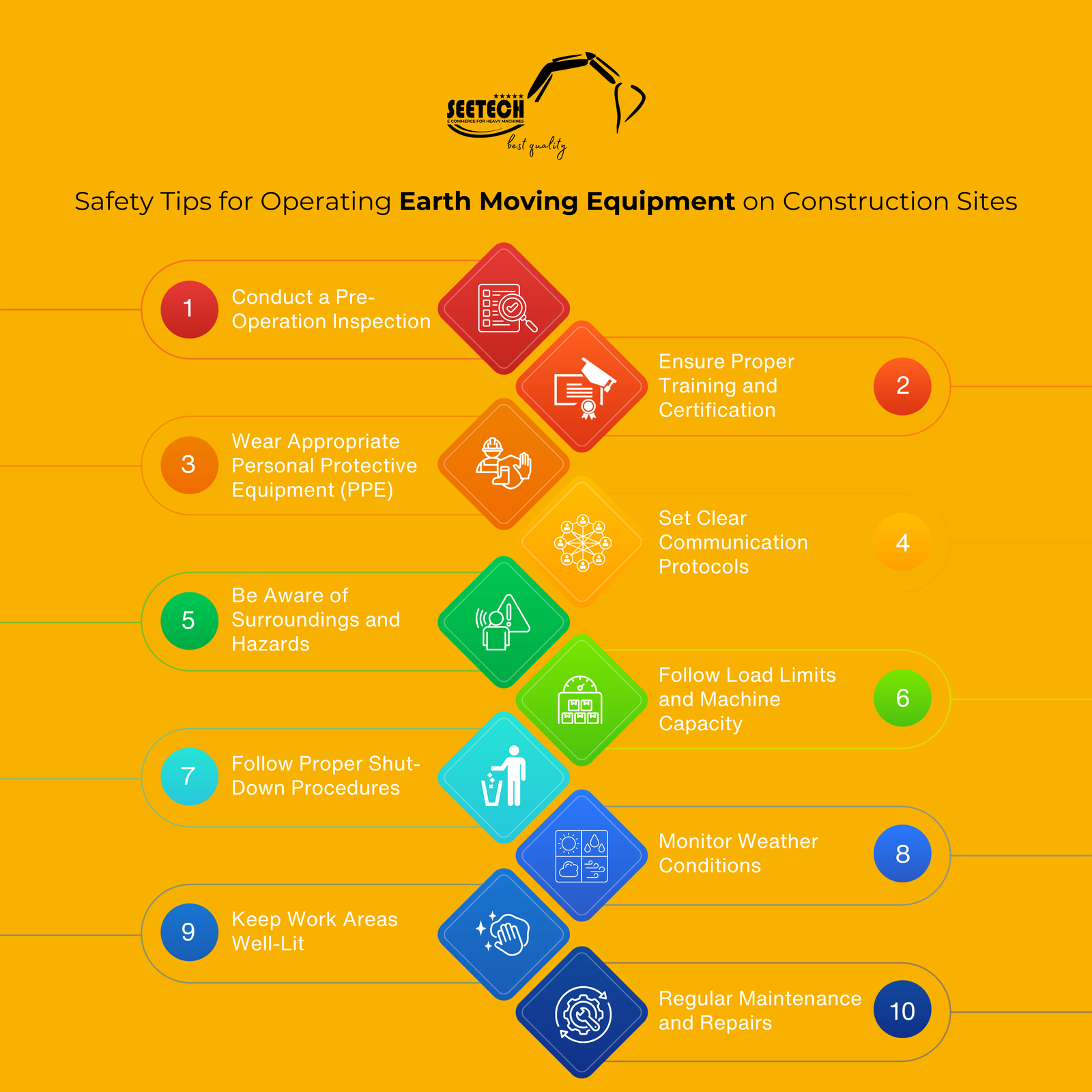 Safety on a construction site is a shared responsibility. By following these safety tips, operators can significantly reduce the risk of accidents and ensure smoother, safer operations when handling earth-moving equipment. Proper training, communication, and awareness are essential in creating a safer working environment for everyone involved.